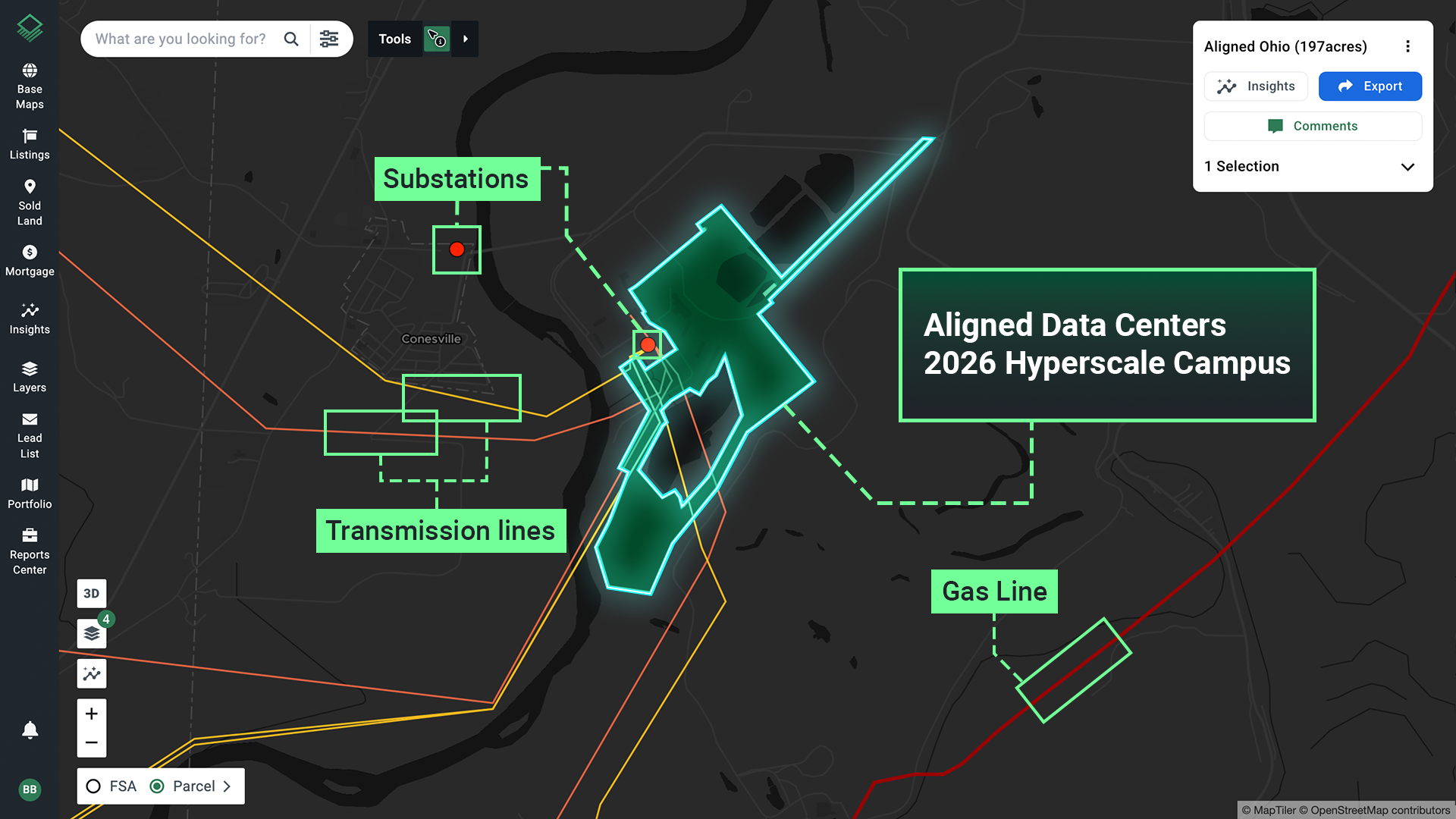 Aligned’s Conesville site highlights what every developer is chasing: land that’s pre-zoned, powered, and strategically located. It’s a rare combination, but not impossible to find if you know where (and how) to look.