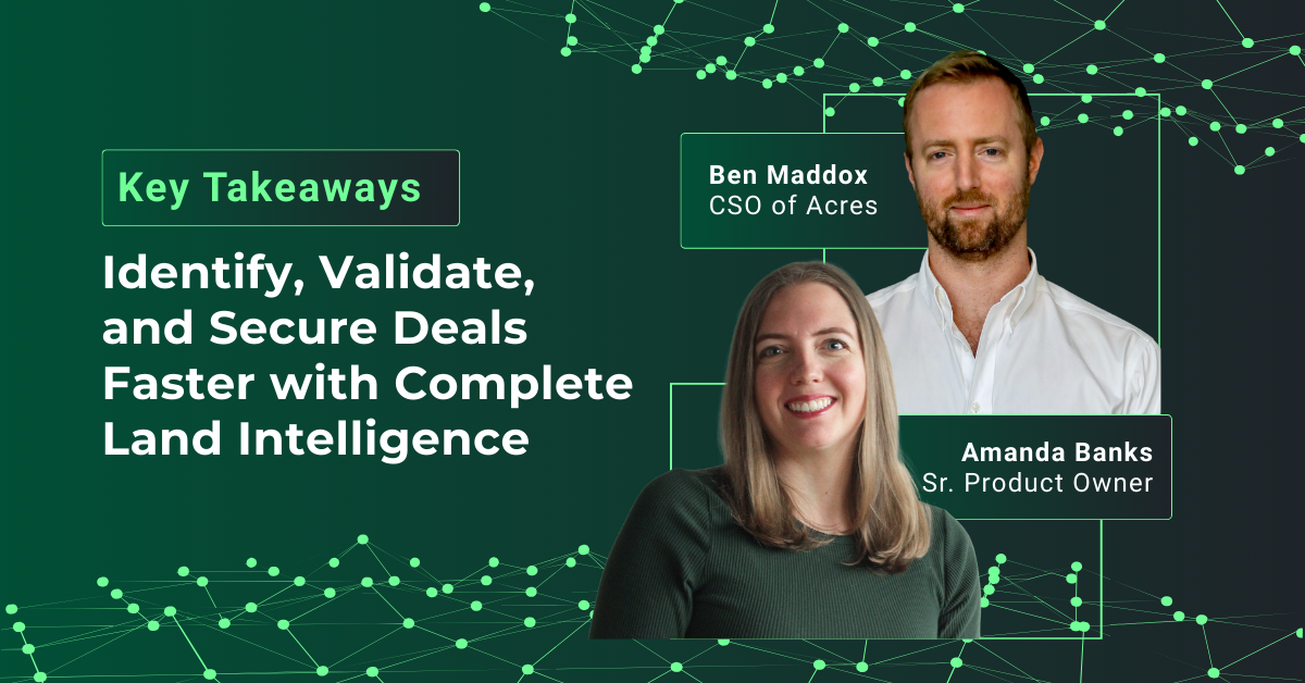 Land acquisition teams know the friction of using dozens of tabs, subscriptions, and data sources just to evaluate a single property. In a recent webinar, Acres’ Chief Strategy Officer Ben Maddox and Senior Product Manager Amanda Banks introduced six new datasets designed to consolidate research, validate sites faster, and move from analysis to owner outreach all within Acres.