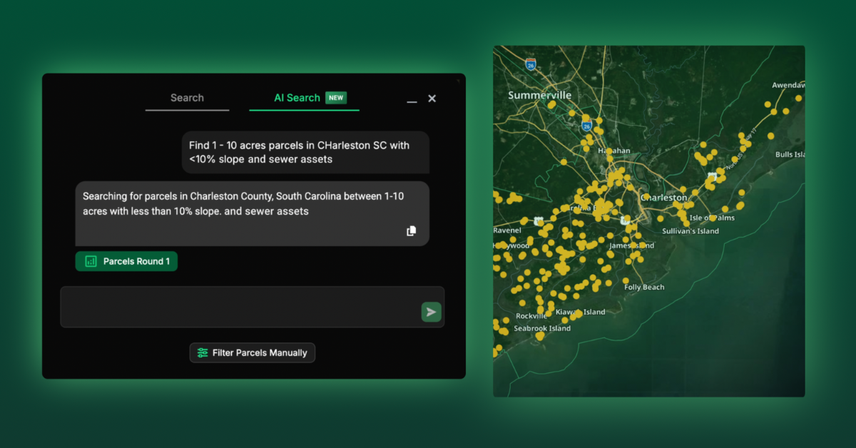 Rather than relying on rigid filters or manual zoning research, teams can now describe what they are looking for in plain language directly in the AI search bar. From physical parcel characteristics to development constraints, infrastructure, and land use considerations, customers will now receive instant, interactive results on the map.