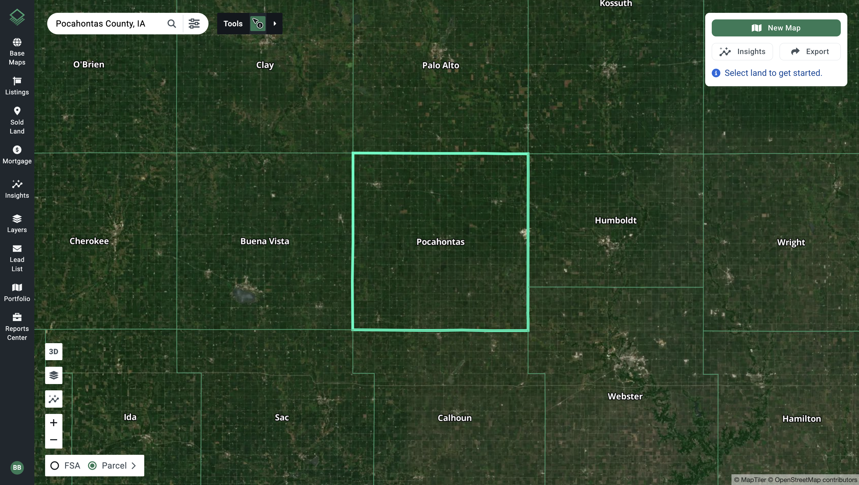 Let's dive into an intriguing case study that perfectly exemplifies the power of Acres in providing deep insights into land value and its potential suitability for investment. This test case uses an off-market opportunity in Pocahontas County, Iowa to demonstrate how Acres can be used to help research the value of a property.