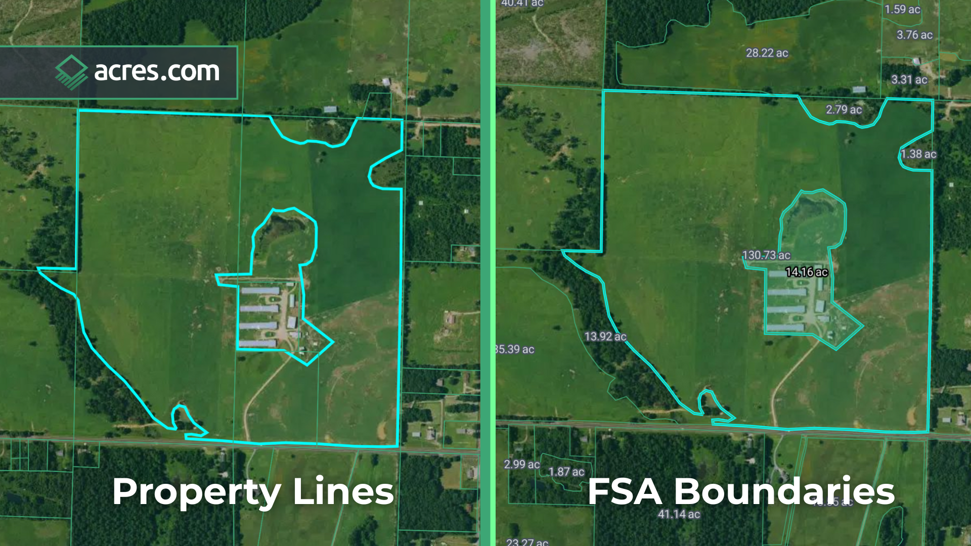 Using Acres, landowners can search by address or GPS to instantly access property boundaries, acreage, and even FSA overlays.