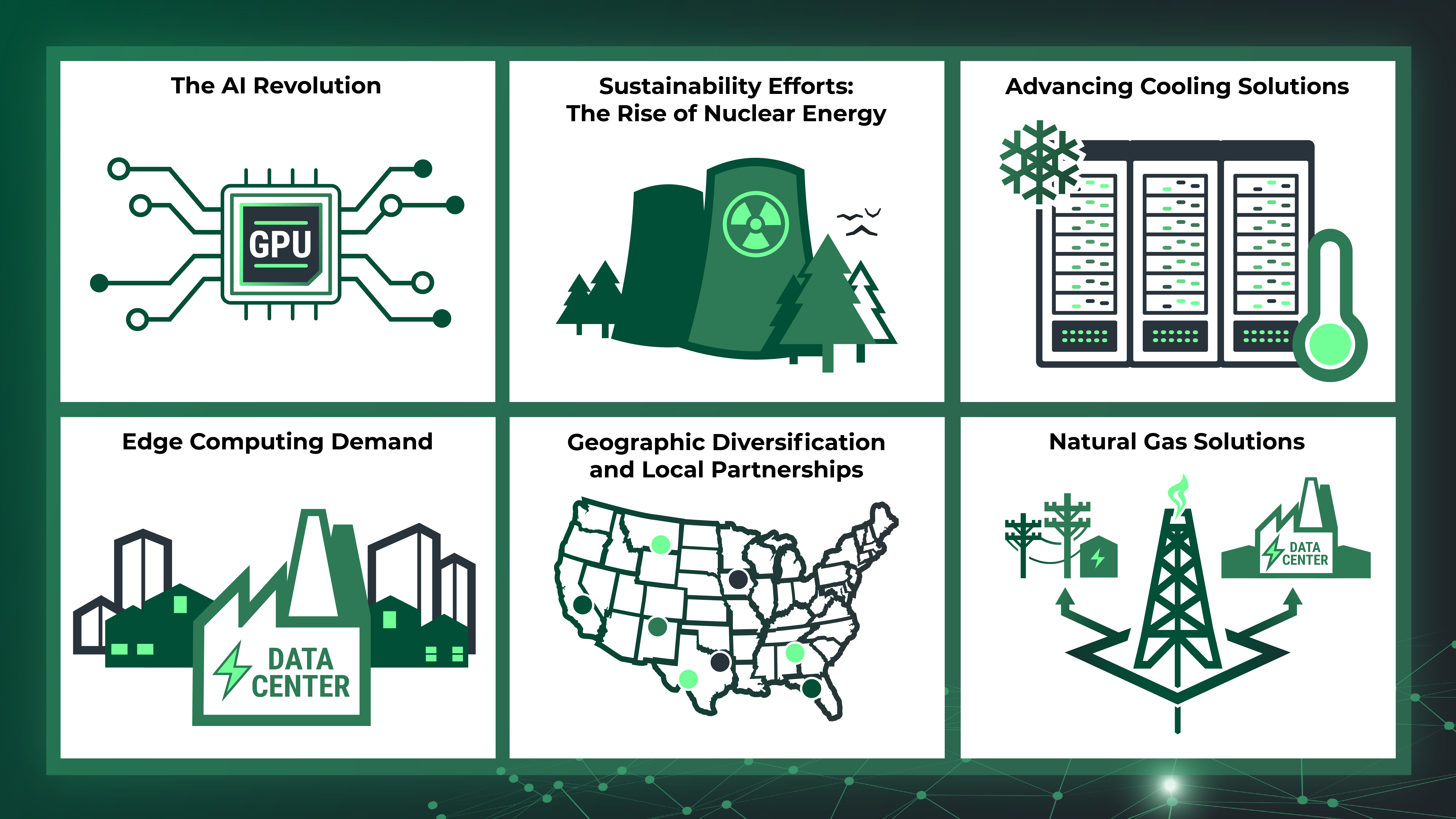 The data center industry is evolving quickly. In 2025 and beyond, AI, sustainability initiatives, advanced cooling technologies, edge computing, and geographic diversification will lead the charge.