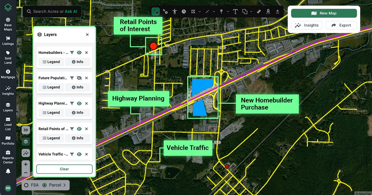 By bringing together infrastructure data, residential growth signals, traffic patterns, and parcel details, teams can identify where demand is forming before it becomes visible in traditional metrics.